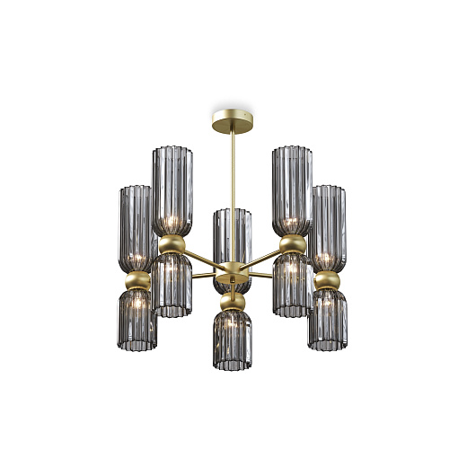 Металлическая арматура в цвете золота.Стеклянные плафоны нескольких цветов: коньячный, белый, серый. Рифленая поверхность стекла усиливает световые эффекты. Источник света: цоколь Е14 и G9. Высота подвесных светильников регулируется сегментами штанги или с помощью трехметрового провода. Серия может использоваться в помещениях с высокими потолками. Доступны подвесные и настенные модели для создания разнообразных световых композиций.