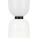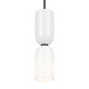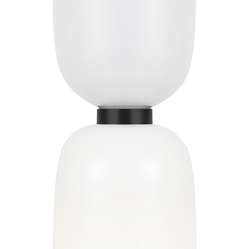 Металлическая арматура, цвет - черный. Светильники стилизованы под форму песочных часов с обтекаемой формой. Керамические элементы с глянцеовй глазурью. Подвесные светильники с плафонами из белой керамики с прозрачным, черно-белым, золото-белым и белым стеклом. Регулируемая высота подвесных светильников.