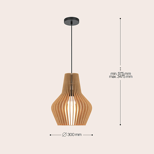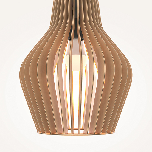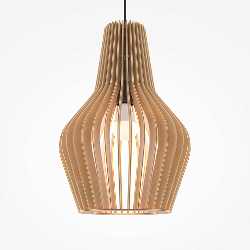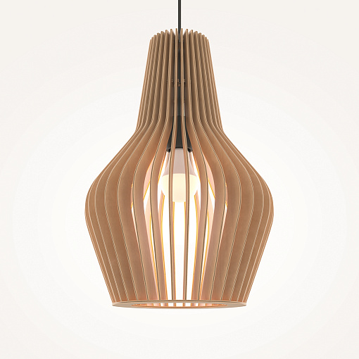 Материал арматуры – металл, цвет – черный.    Абажур – 5-ти  слойная фанера бежевого оттенка, покрытая специальным ла-  ком. Тканевый черный провод. Регулируемая высота. Простые  лаконичные форма, природные материалы. Цоколь E27.