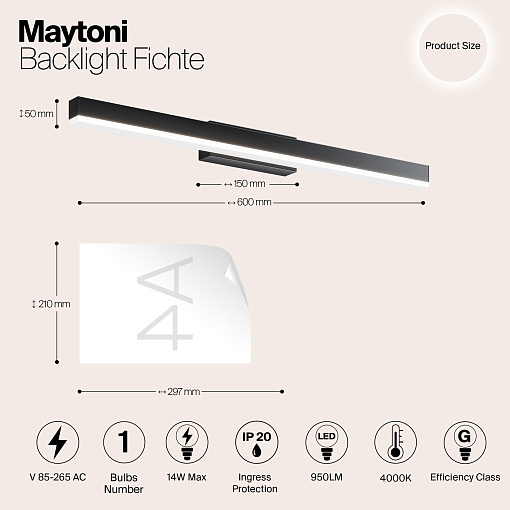 Алюминиевый корпус модели выполнен в двух популярных оттенках: белом и черном цвете. LED-источники обеспечивают мягкий направленный свет комфортной цветовой температуры (4000К). В серии представлены модели двух размеров и различной мощности (9W, 14W). Светильник можно использовать для подсветки зеркал и арт-объектов.