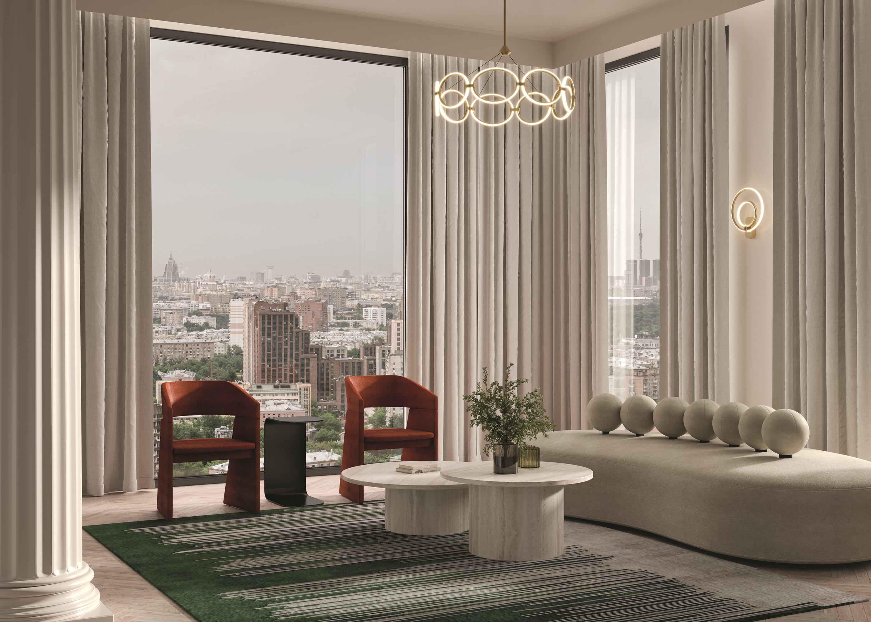 Серия Link представлена подвесными и настенными светильниками с разной вариацией светодиодных колец. Арматура - из металла в цвете латунь с чёрными элементами. Источник света — LED-кольца. Цветовая температура — 3000 K. Угол рассеивания — 125 градусов. Провод регулируемый, 3 метра.