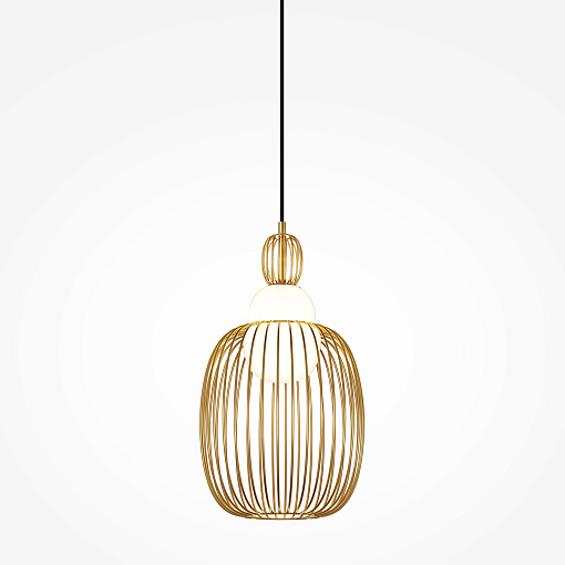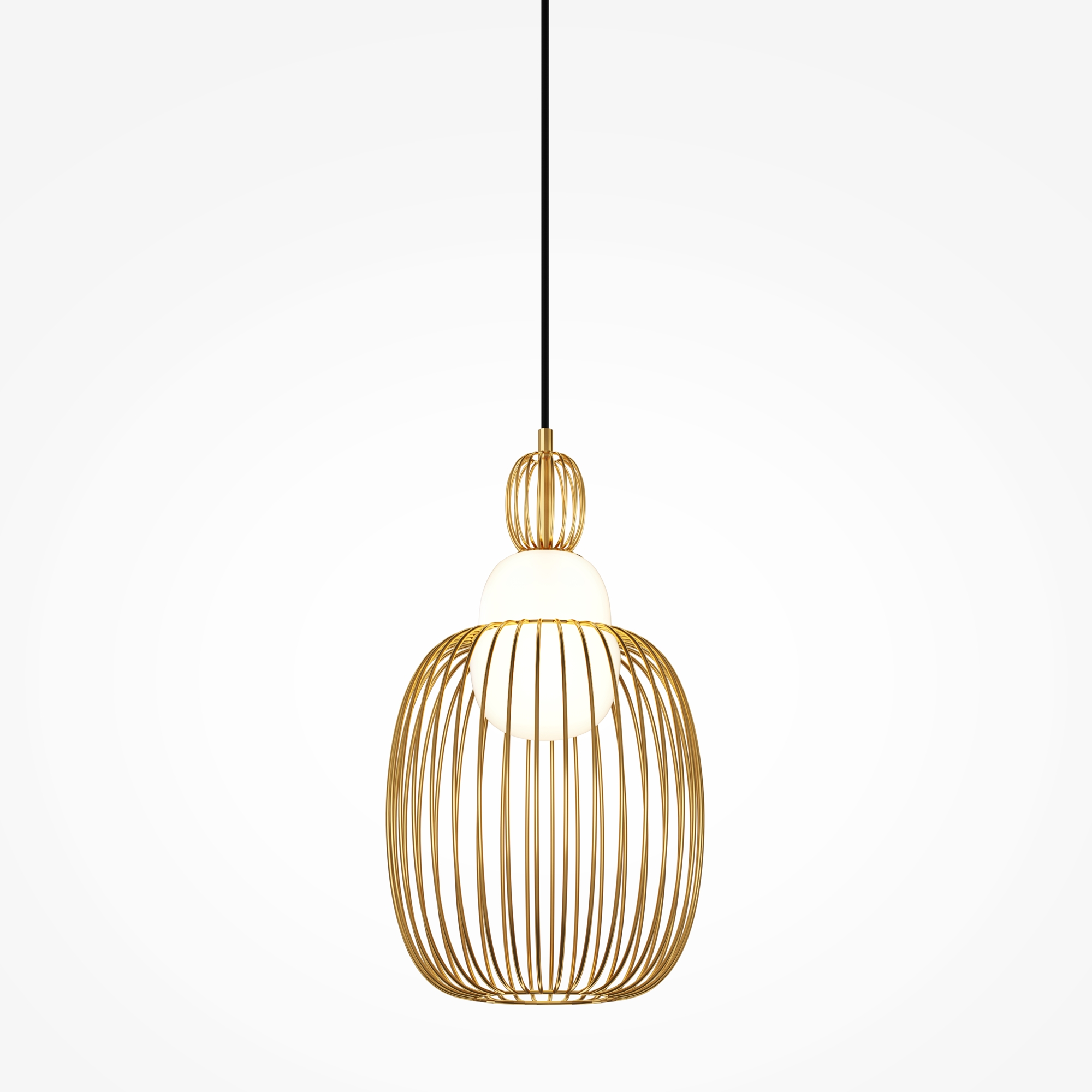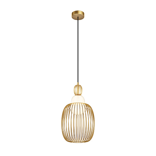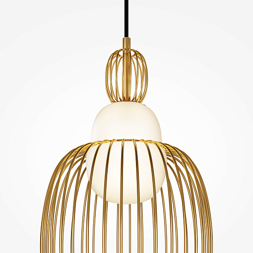 Цвет арматуры — латунь. Материал арматуры — металл. Абажур — каркас из проволоки, стекло. Оригинальный дизайн с эффектом левитации. Стеклянный рассеиватель со специальным выступом для крепления проволочного плафона. Два типа подвесных светильников: компактные со сменными лампами и крупный с LED-модулем для двунаправленного освещения. Провод длиной 3 метра для высоких потолков. Регулируемая высота подвеса. Универсальный дизайн для неоклассики, эклектики и фьюжн.