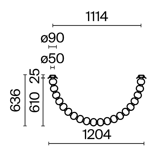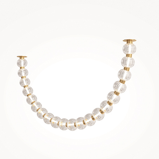 Арматура из металла, цвет – хром. Акцентный декор в виде рельефных сфер из литого стекла. Источник света – светодиодная лента – скрыта под акриловым рассеивателем. Регулируемая высота подвесных светильников.