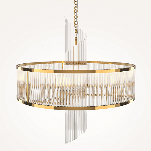 Материал арматуры - металл, цвет - золото. Декоративный элемент из прозрачного стекла в форме рельефных трубок. Цоколь Е14. Лампы в комплект не входят.