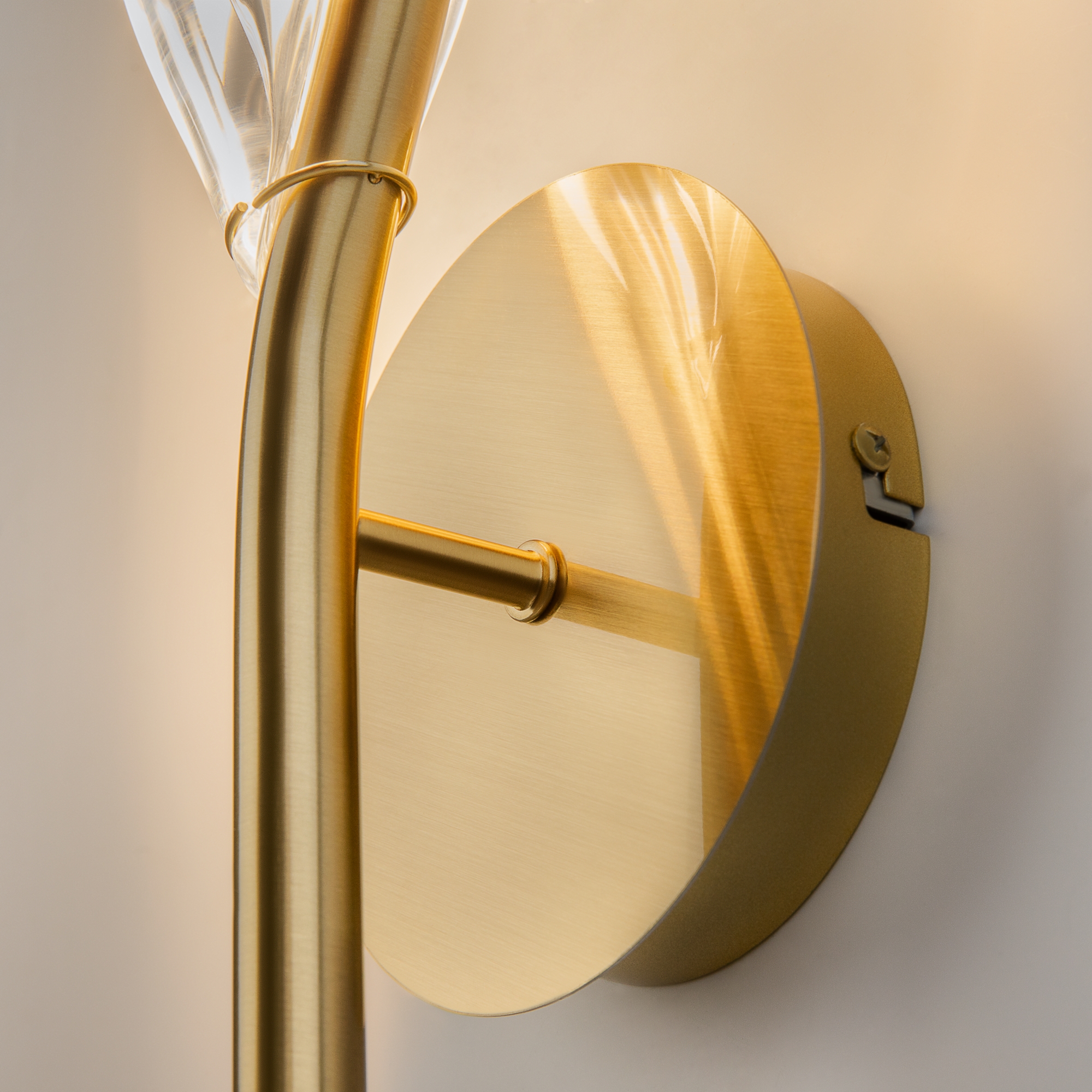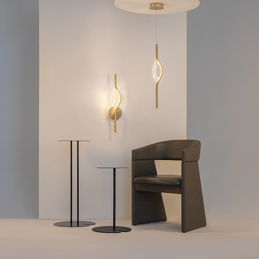 Алюминиевая арматура, цвет - латунь. Источник света: LED. Цветовая температура — 3000К, угол рассеивания — 120 градусов. Прозрачный рассеиватель из акрилового стекла. Светодиодный модуль установлен в обрамление из тонкой металлической арматуры.