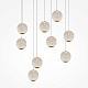 Цвет арматуры — латунь, плафоны из прозрачного акрила. Подвесной светильник с прочными и легкими плафонами из акрилового стекла снаб жен встроенным LED-источником света. LED-модуль дает теплый свет с цветовой температурой 3000К. Длина провода — 3 метра, ее можно  регулировать для установки в помещении с высокими потолками.