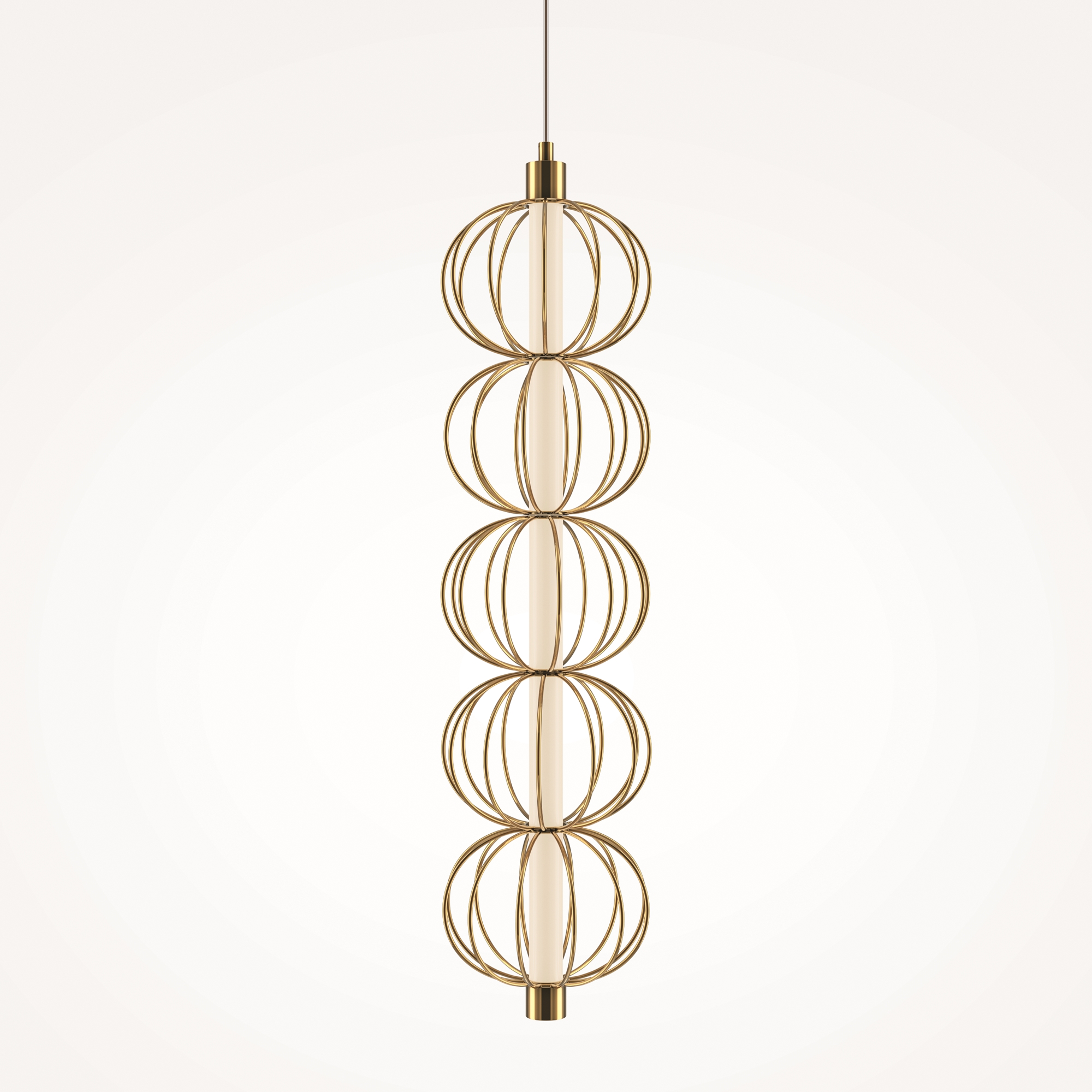 Арматура - металл, цвет - золото. Декоративные проволочные плафоны-сферы - ручная  работа. Горизонтальные подвесы в двух вариатах монтажа - накладном и скрытом. Све товой элемент - силиконоваая трубка с LED-источником. Цветовая температура 3000К.