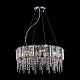 Арматура из металла, цвет – хром. Прозрачный хрустальный декор двух видов: крупный вытянутый по внешнему периметру и округлый на подвесках. Высота подвесных моделей регулируется. Цоколь Е14.