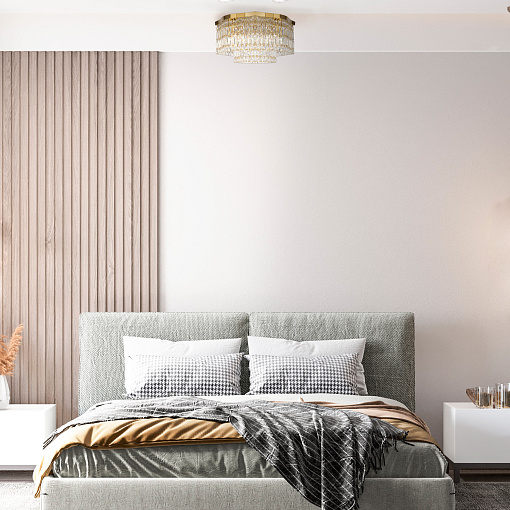 Металлическая арматура в двух оттенках: хром, золото. Декор – прозрачные кристаллы. Потолочные модели...подробнее