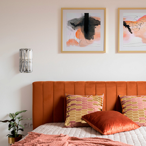 Материал арматуры – металл, оттенки – хром и золото. Декор – прозрачные стек лянные кристаллы. Архитектурная огранка декоративных элементов. Цоколь Е14.