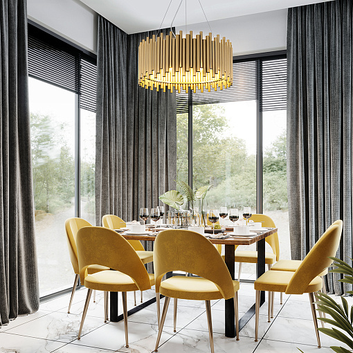 Материал арматуры – металл, цвет – латунь. Декор в виде трубок из нержавеющей стали в бронзовом цвете. Последний ряд декора – стеклянные трубки – обеспечивает невесомый силуэт.
