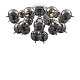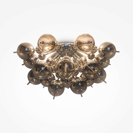 Арматура – металл, оттенки – хром, латунь. Плафоны-сферы из выдувного стекла. Гальваническое покрытие плафонов в двух оттенках: янтарный и дымчатый цвет.