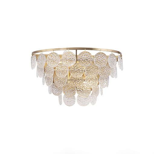 Материал арматуры – металл, цвет – золото. Фактурный декор из прозрачного стекла. Округлые подвески с...подробнее