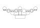 Арматура из металла в золотом цвете. Плафоны-сферы — белый пластик. Дизайн с имитацией молекулярной структуры. LED-источники света.