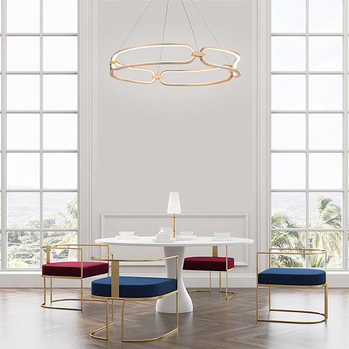 Металлическая арматура в двух оттенках: никель и матовое золото. Источник света –SMD-светодиоды, скрытые под опаловым рассеивателем. Минималистичный дизайн. Регулируемая высота.