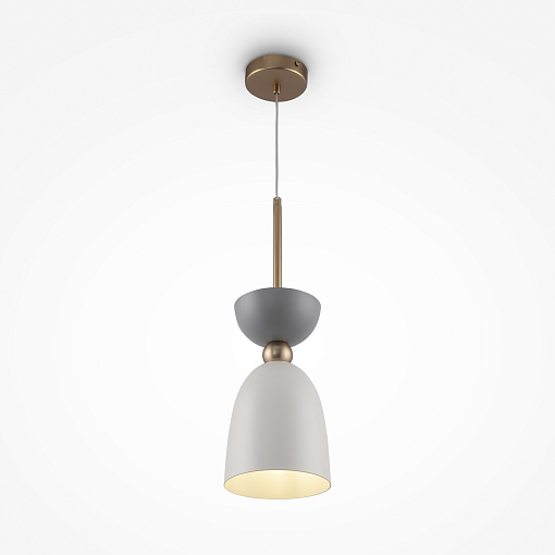 Арматура из металла, оттенки – латунь, белый. Металлические плафоны в двух цветовых решениях: белый + серый, голубой + бирюзовый. Оригинальная форма колокольчика. Поворотный механизм в плафонах для направленной подсветки.