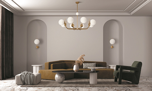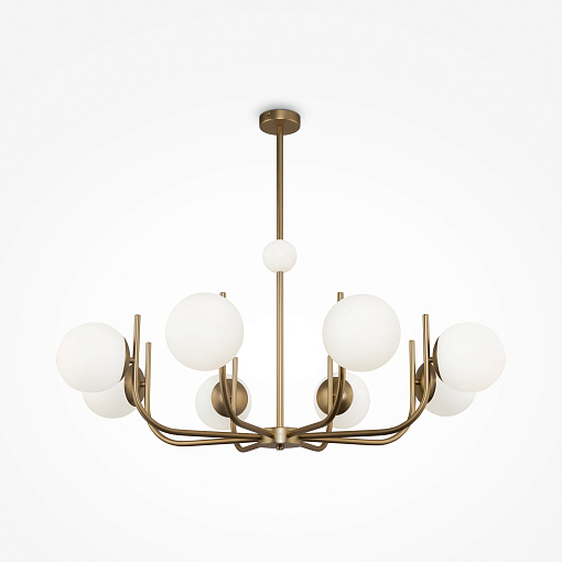 Арматура из металла окрашена в цвет латуни. Плафоны-сферы из матового белого стекла. Трендовые...подробнее