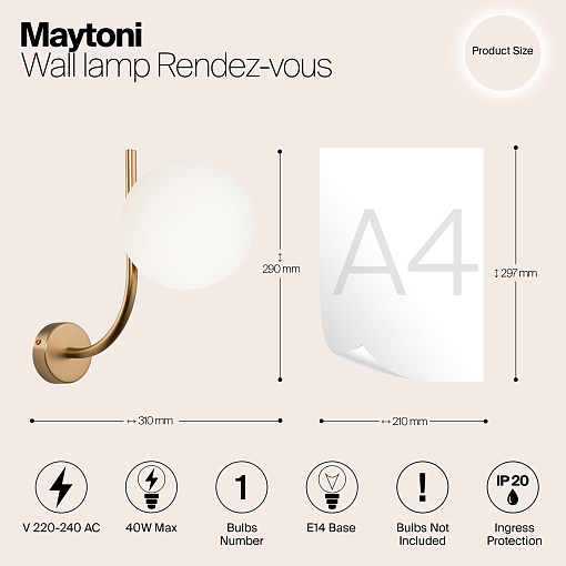 Арматура из металла окрашена в цвет латуни. Плафоны-сферы из матового белого стекла. Трендовые обтекаемые формы. Дизайн в стиле ретро. Источник света — лампы с цоколем Е14.