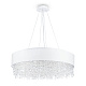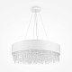 Металлическая арматура в белом цвете. Абажур – ткань, нанесенная на ПВХ, цвет – белый. Декор – подвески в виде граненых кристаллов. Высота подвесных светильников регулируется тросом.