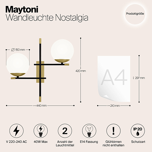 Настенный светильник (бра) Maytoni MOD050WL-02G