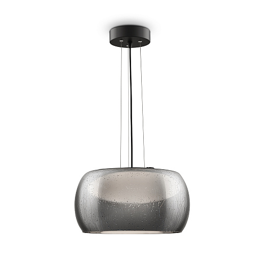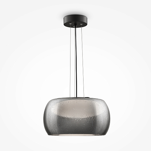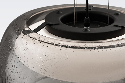 Металлическая арматура в черном цвете. Плафон из выдувного стекла с эффек том дождевых капель. Оттенки плафона: янтарный, дымчатый. Светодиодный источник света скрыт под опаловым рассеивателем. Р