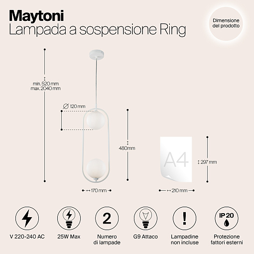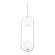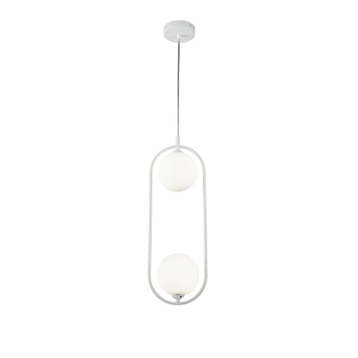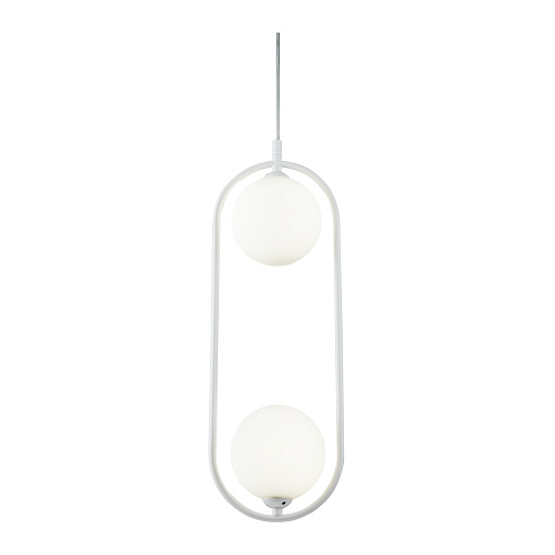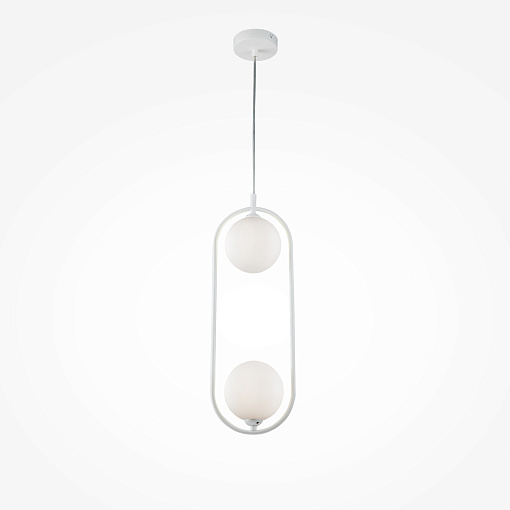 Арматура из металла в трех оттенках: белый, черный, латунь. Плафоны-сферы закреплены на округлом металлическом каркасе. Материал плафонов — выдувное стекло, цвет — белый. Высота подвесных моделей регулируется.