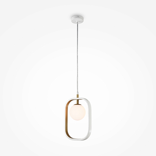 Металлическая арматура в комбинации двух оттенков: белый и серебро, белый и золото. Плафоны-сферы из выдувного стекла, цвет – белый. Регулируемая высота.