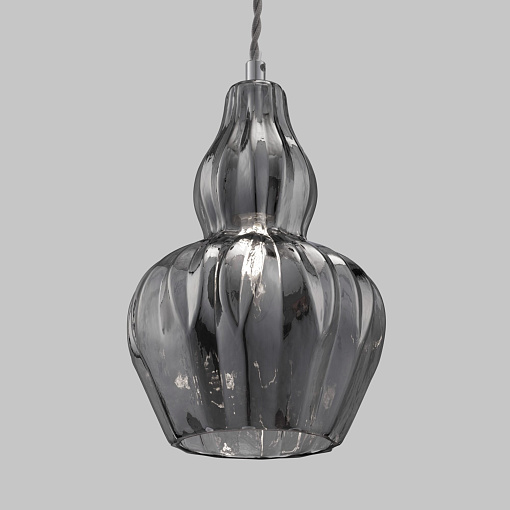 Арматура — металл, оттенок — никель. Рельефный плафон выполнен из стекла. Оттенки плафона — прозрачный и голубой. Витой провод. Регулируемая высота.