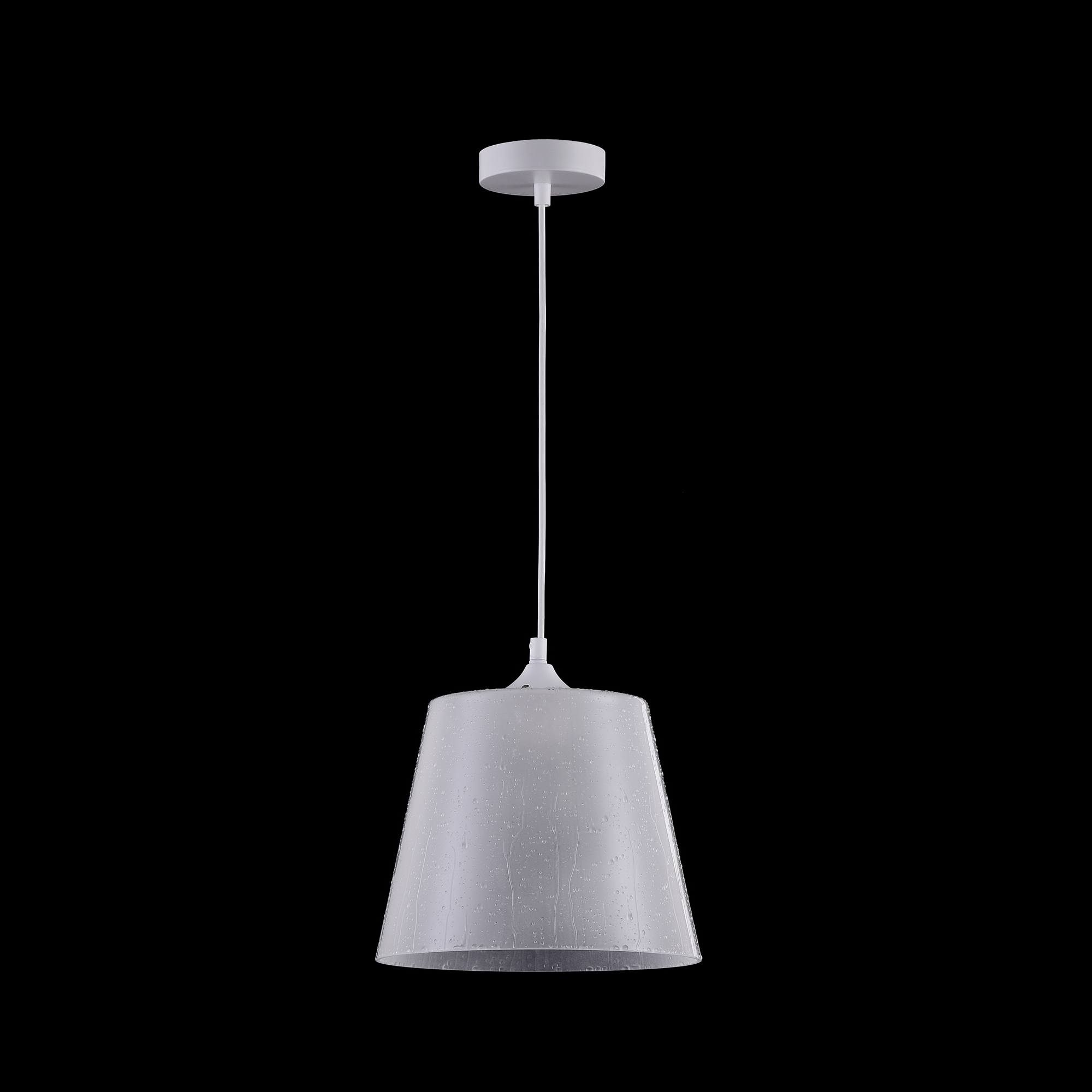 Каркас из металла. Плафоны из матового белого стекла с эффектом «мокрых капель».