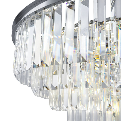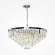 Арматура из металла в трех оттенках: латунь, хром, золото. Многоярусный декор. Подвески: прозрачное (арматура – хром, латунь) и янтарное (арматура – золото) стекло. Высота подвесных моделей регулируется.
