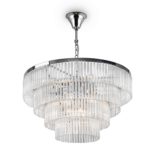 Металлическая арматура в двух оттенках: хром и латунь. Декоративные эле менты – прозрачные стеклянные трубки в форме звезд. Многоярусный декор обеспечивает игру света.