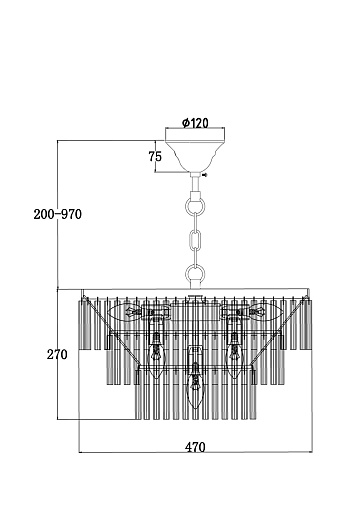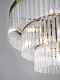 Металлическая арматура в двух оттенках: хром и латунь. Декоративные эле менты – прозрачные стеклянные трубки в форме звезд. Многоярусный декор обеспечивает игру света.