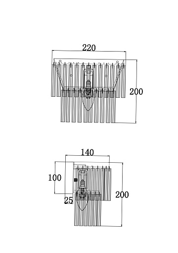 Металлическая арматура в двух оттенках: хром и латунь. Декоративные эле менты – прозрачные стеклянные трубки в форме звезд. Многоярусный декор обеспечивает игру света.