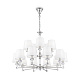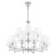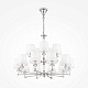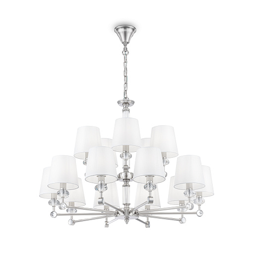 Материал арматуры – нержавеющая сталь, цвет – хром. Материал абажуров – текстиль на ПВХ, цвет – белый. Декор – прозрачное стекло. Акцентные стеклянные кристаллы на рожках со сложной огранкой.