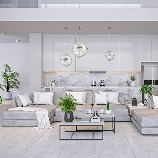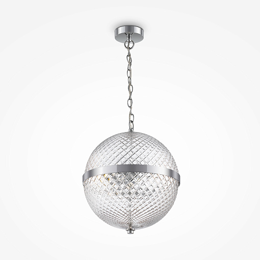 Арматура – металл, цвет – хром. Плафон – прозрачное выдувное стекло. Сферическая форма с фактурным рисунком. Регулируемая высота.