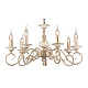 Металлическая арматура, цвет – золото с кремовыми вставками. Декоративные рожки с флористическими элементами. Источники света в форме свечей. Высота люстр регулируется длиной цепи.