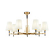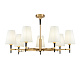 Металлическая арматура, гальванизация в цвет латуни. Часть элементов окрашена в черный цвет. Абажуры из белого текстиля, нанесенного на ПВХ. Источник света - лампа с цоколем Е14.