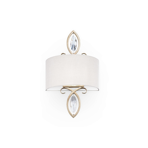 Арматура из металла, цвет – античное золото. Кремовые абажуры из текстиля на ПВХ. Кованые рожки с вензелями. Декор основания и рожков – граненые кри сталлы. Высота люстр регулируется дл