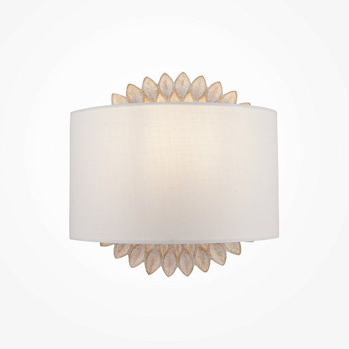 Арматура из металла, цвет – кремовый с золотом. Абажур – белый хлопок на ПВХ. Флористический декор.
