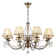 Арматура из металла, цвет – бронза с черной патиной. Абажуры – бежевая органза, тесьма по нижнему краю. Фактурный резной декор. Подвески из кри сталлов. Регулируемая высота. -