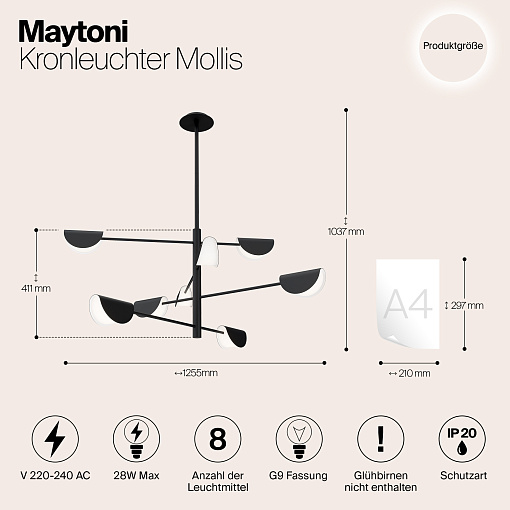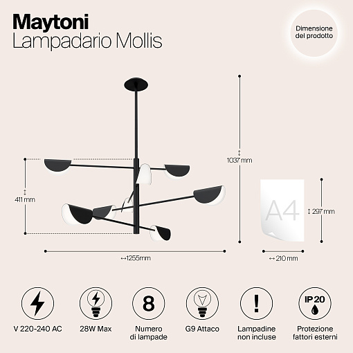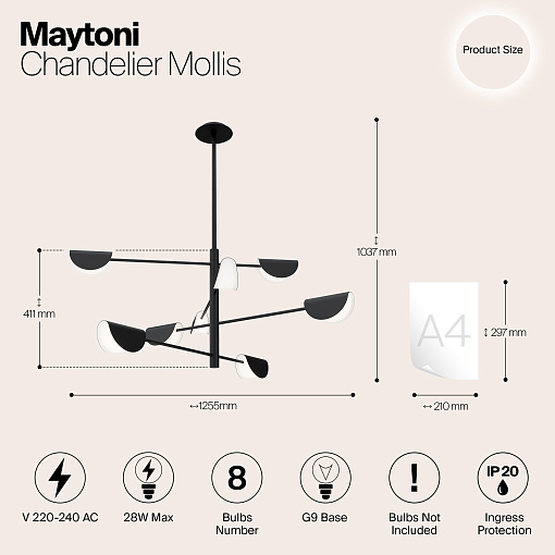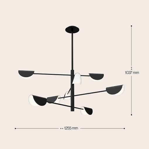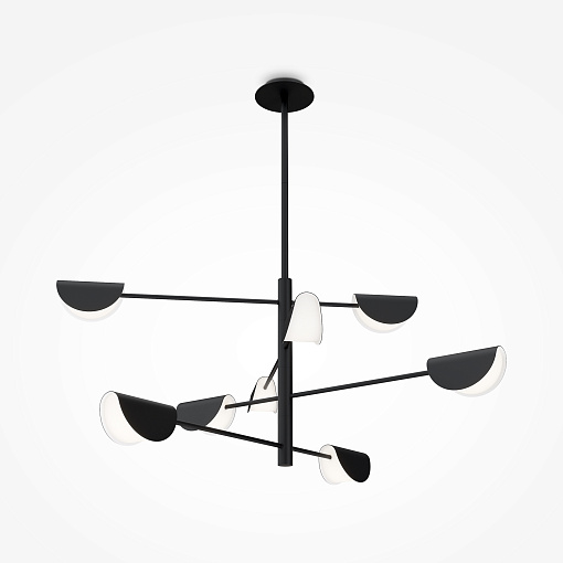 Арматура и плафоны из металла, цвет – черный. Оригинальная форма плафона с плавным контуром. Источники света скрыты под акриловым рассеивателем.