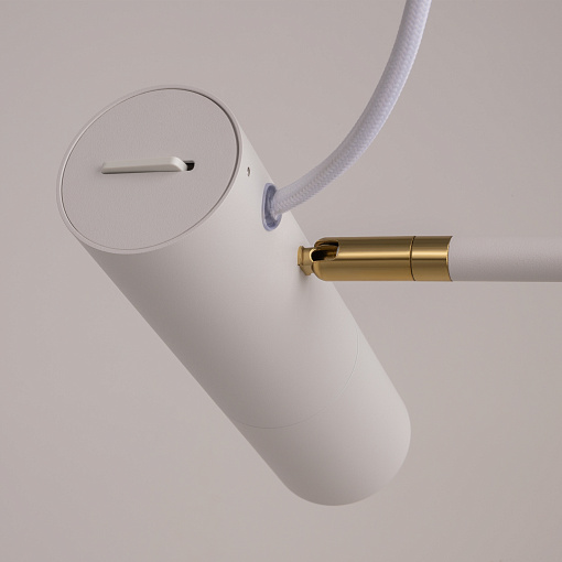 Металлическая арматура, оттенки – черный, белый. Плафон-цилиндр из металла в тон арматуре. Минималистичный дизайн