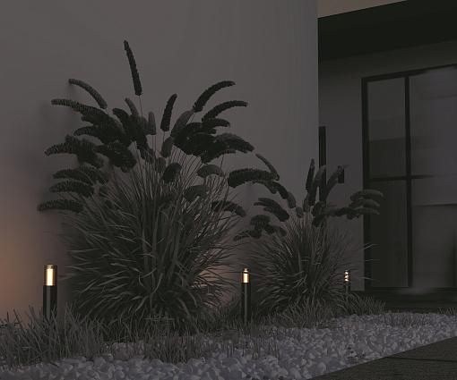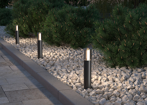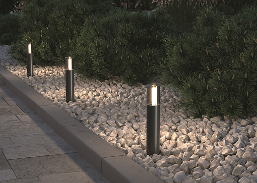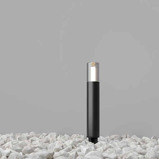 Материал корпуса – алюминий, цвет - графит. Плафон - прочное тонированное стекло. Источник света - лампа с цоколем G9. Серия для маркерной и декоративной подсветки дорожек и ландшафта. Степень защиты - IP54.