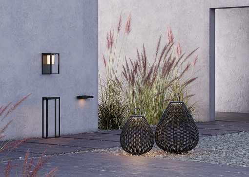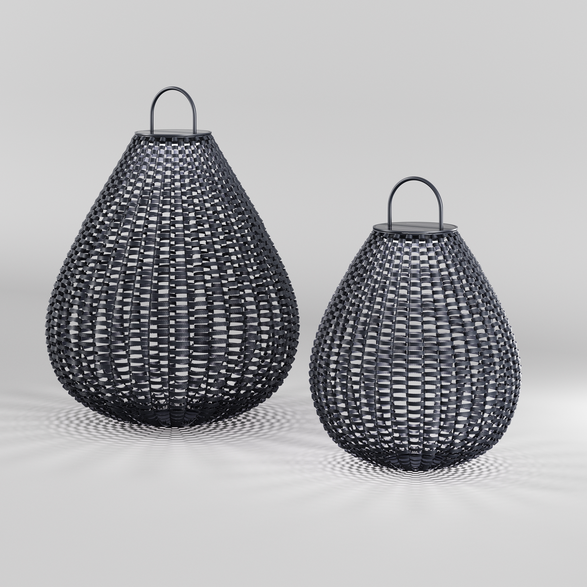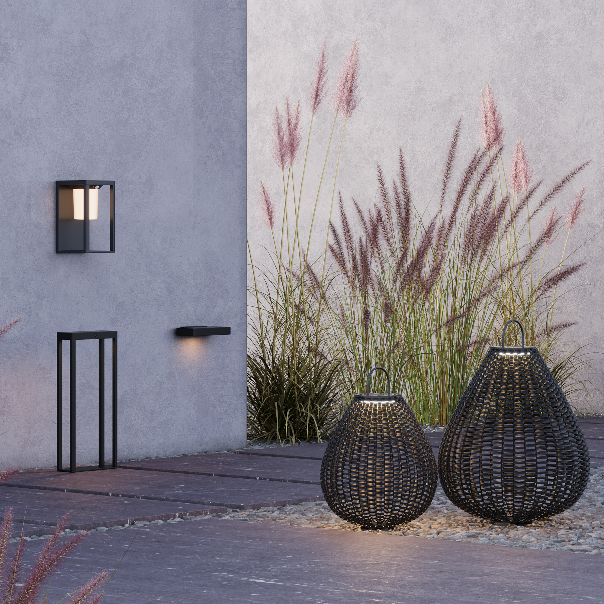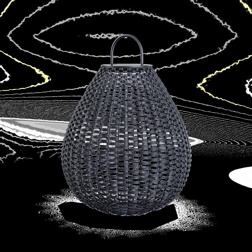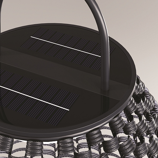 Корпус из ротанга ручного плетения, цвет - черный. Питание от солнечной батареи, время работы - до 12 часов без подзарядки. LED-источник света, цветовая температура - 3000К.  Возможность установки в любом месте из-за отсутствия проводов.  Удобные ручки для переноски. Высокая степень защиты IP65. Встроенный датчик движения. Серия для декоративной подсветки.
