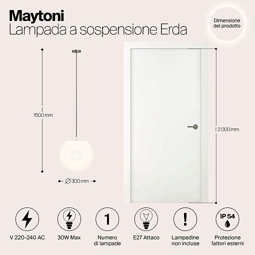 Копрус из высокопрочного пластика ПММА, цвет — белый. Высокий уровень защиты от пыли и влаги - IP 54. Источник света — лампа с цоколем E27. Трендовая сферическая форма.