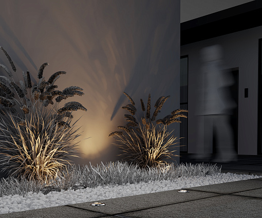 Металлический корпус из нержавеющей стали. Цвет - серебристый. Три дизайна корпуса - три варианта свечения. Высокая степень защиты IP67 позволяет использовать во влажных зонах. Подходят для маркерной подсветки дорожек и лестниц.
