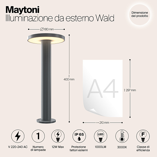 Материал корпуса — металл, цвет — графит. Высокий уровень защиты от пыли и влаги IP 65. Устойчивость к коррозии и перепадам температур. LED-источник света с нейтральной цветовой температурой 3000 К. Серия включает настенные и ландшафтные светильники.