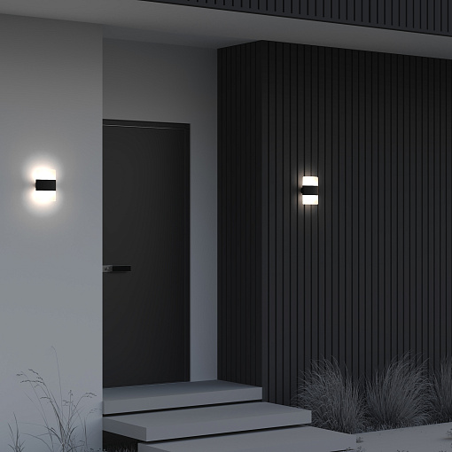 Корпус из алюминия, цвет - графит. Рассеиватель - белый матовый акрил. Равномерное мягкое рассеивание света. LED-источник света, цветовая температура - 3000К. Степень защиты - IP54.