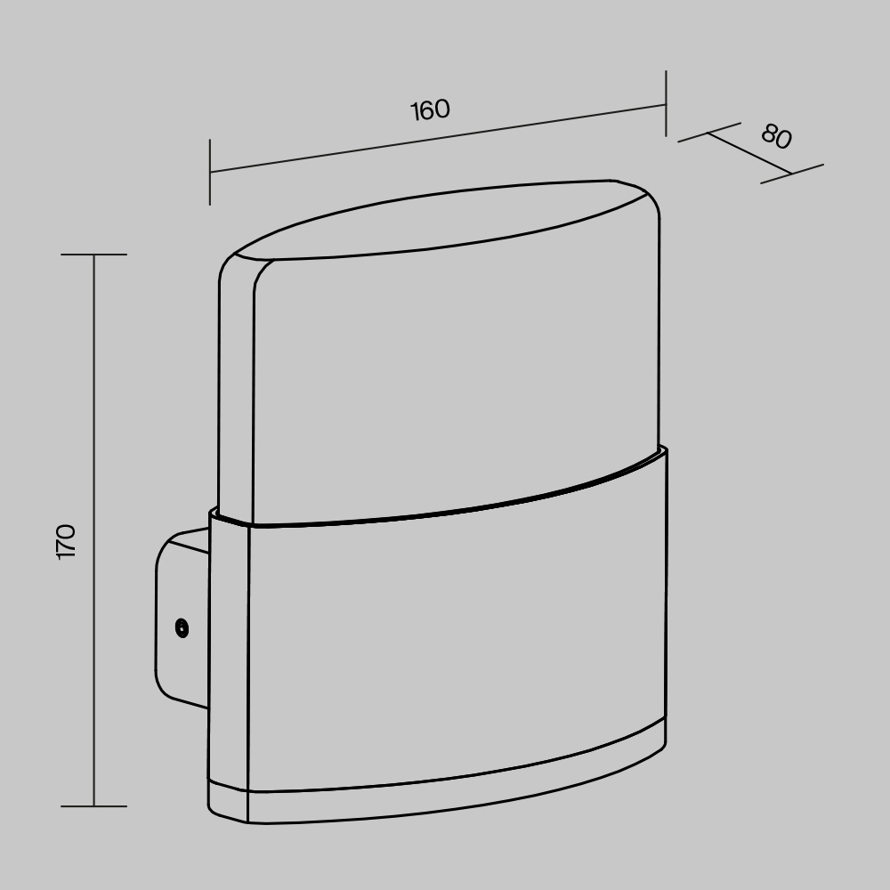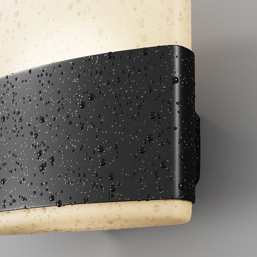 Корпус из алюминия, цвет - графит. Рассеиватель - белый матовый акрил. Равномерное мягкое рассеивание света. LED-источник света, цветовая температура - 3000К. Степень защиты - IP54.