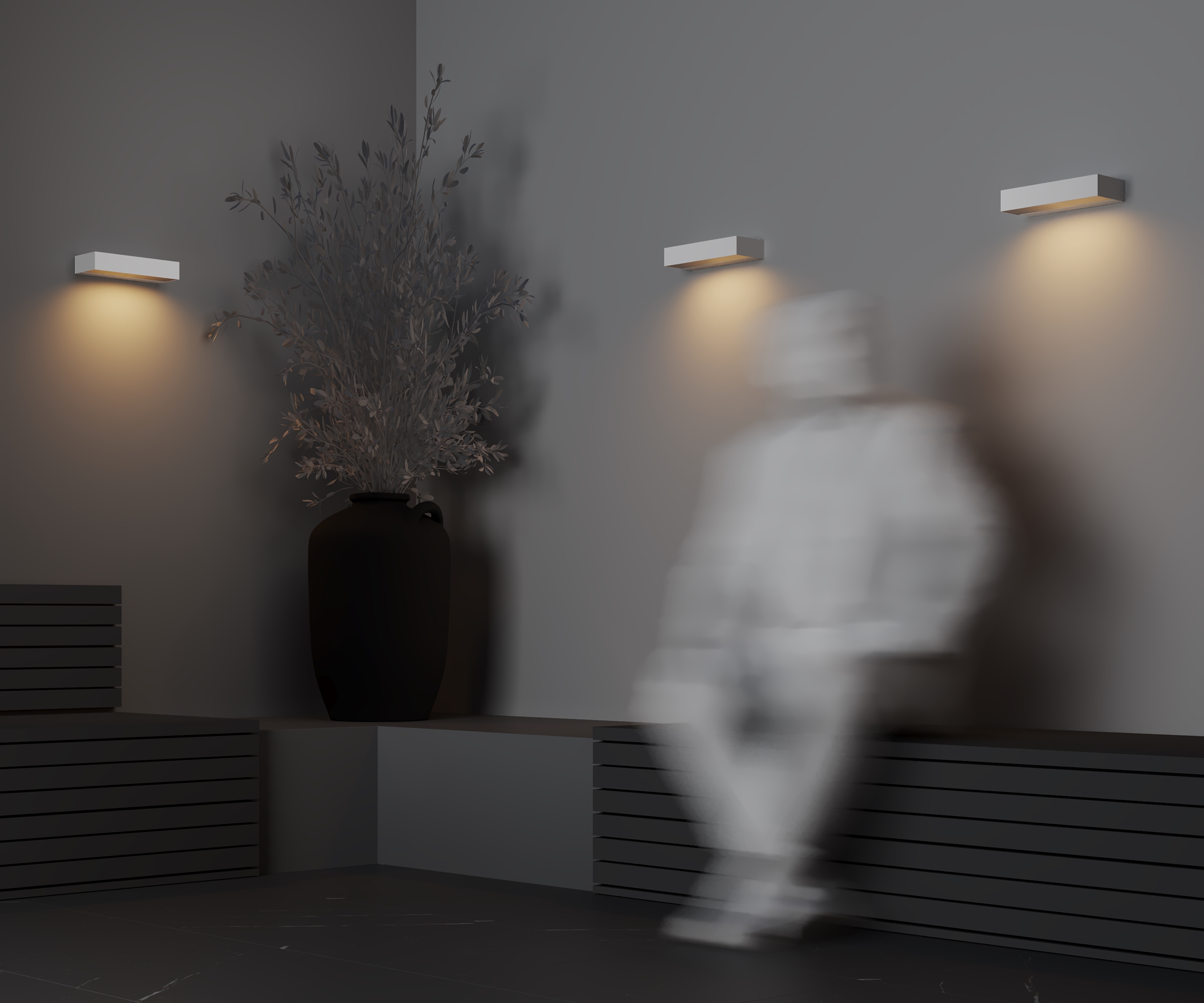 Материалы корпуса — алюминий и стекло. Оттенки — белый, графит. Устойчив к коррозии. LED-источник света, цветовая температура — 3000К. Индекс цветопередачи — 80Ra. Высокая степень защиты от пыли и влаги — IP 65.